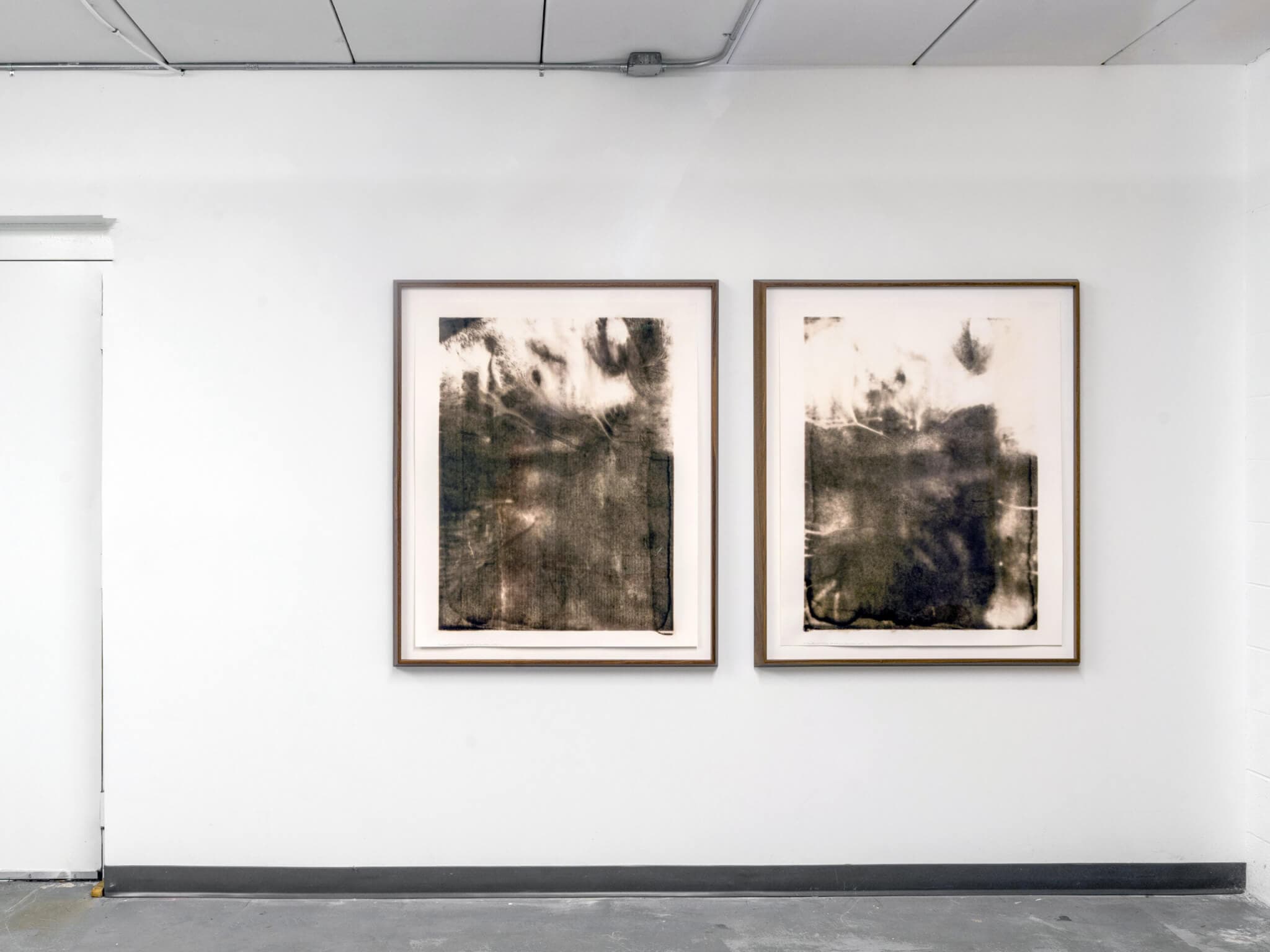 The images these live cells represent are just as potent and charged as the material used to produce them. A diptych of prints show jade carved to look like grapes, creating a sort of mise en abyme, as living organisms (bacteria) represent artificial constructions (carved jade) that represent living organisms (grapes). Elsewhere, a diptych of prints titled Jon Sleeping #1 and Jon Sleeping #2 depicts the artist’s spouse in deep sleep. Sleep is the proverbial cousin of death (is Jon dead or dormant?), but these prints teem with residue of bacterial life and are indexical of shared conjugal life. I think again of Laura Marks: “It is hard to look closely at a lover’s skin with optical vision.”