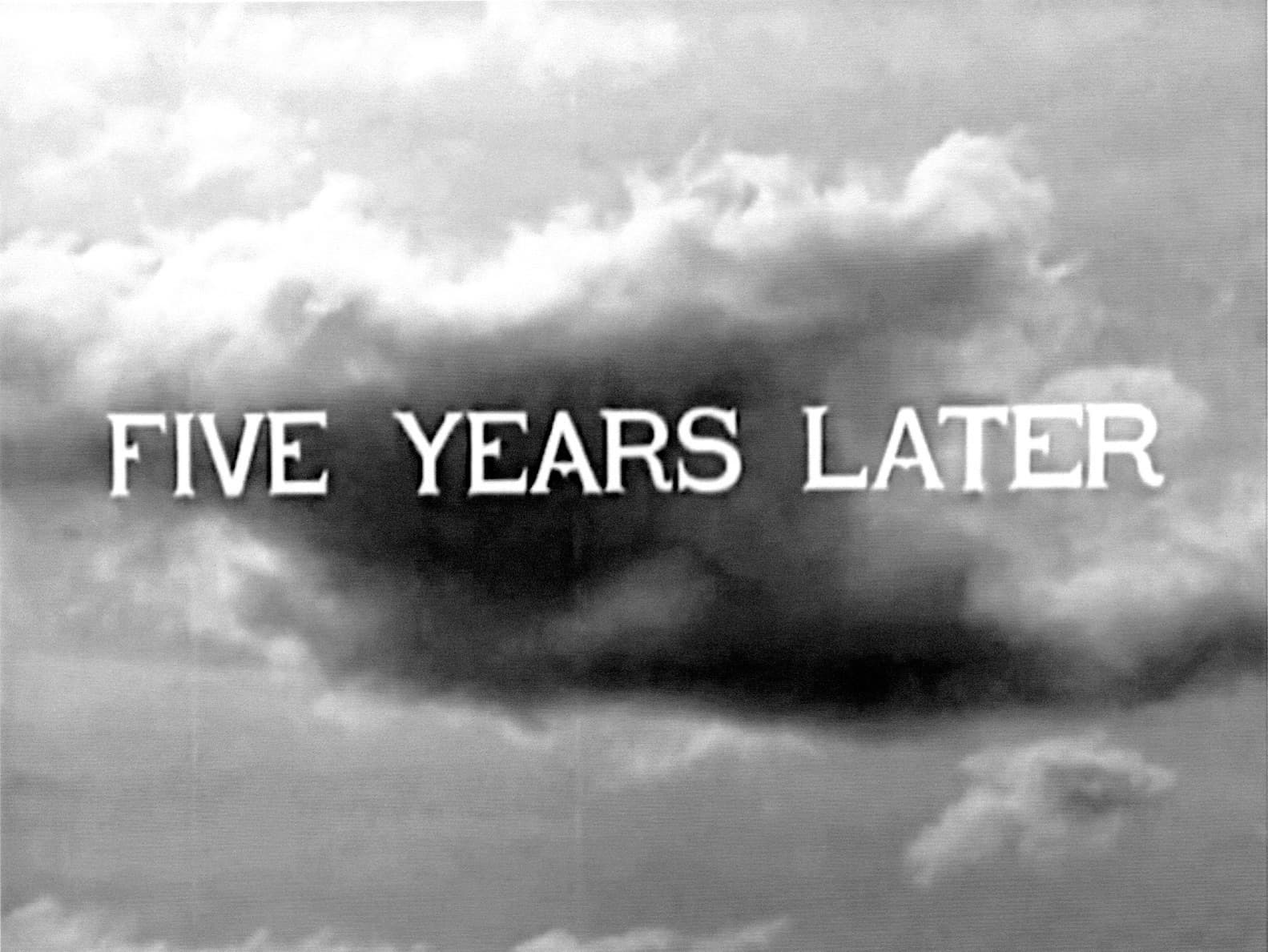 Viewers are first greeted by “I want to tell you.” On a black screen, the title phrase is written in white, flickering slightly as the projection plays and starts over. There are five pieces in the exhibition that use text to assist in conveying a message. One of these intermediary works is “Five years later.” In the film, “FIVE YEARS LATER” is written across streaming clouds in an antiquated serif font. The video is black and white, the clouds rendered in various shades of gray behind the strip of white letters. A question is embedded in the words: five years later than what? When Welitoff employs text, she leaves the viewer even more curious about the construction of time. Two other films present equally ambiguous demarcations: “Two Years” being one of them, and “The End” being another.