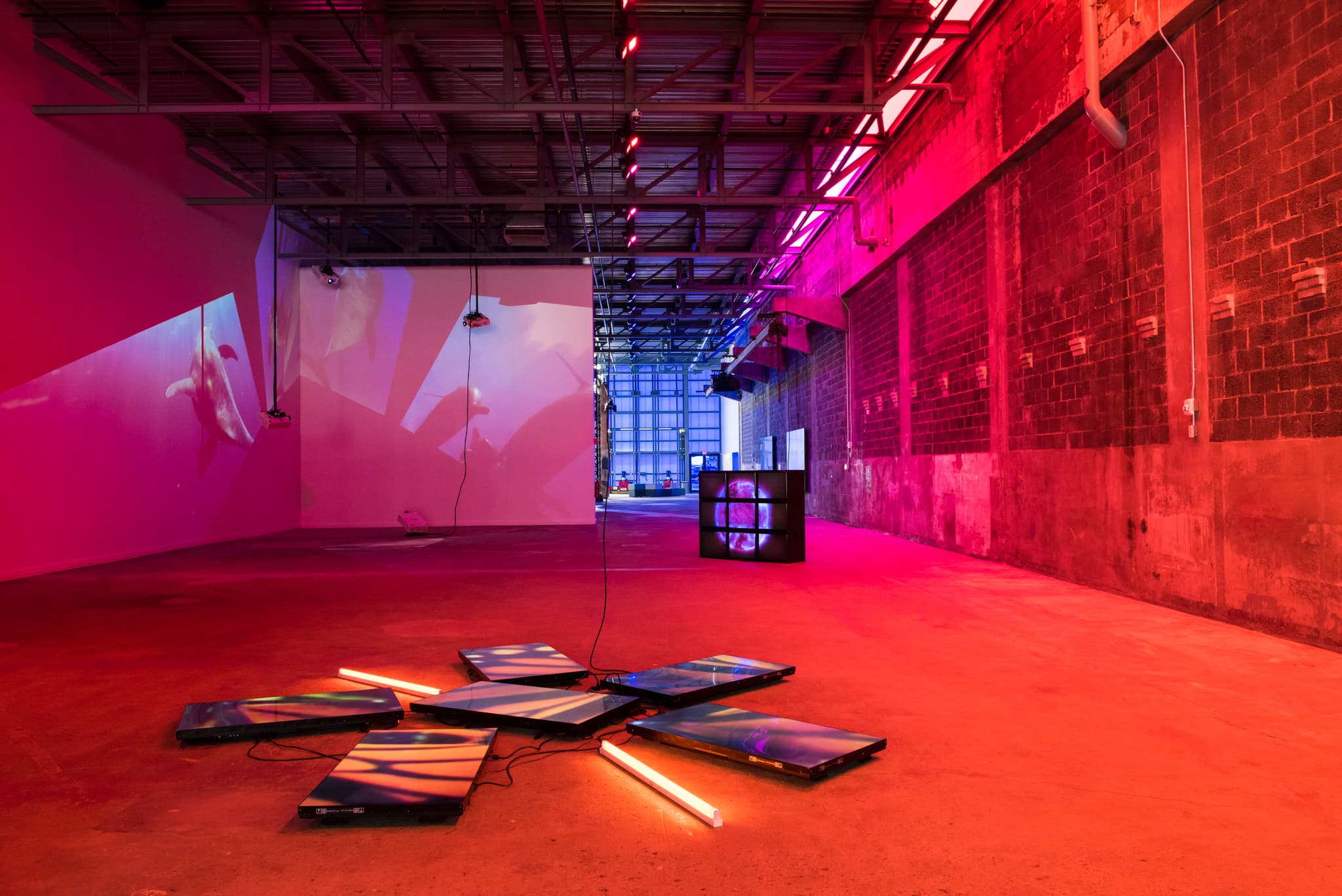 “As Radical as Reality” and “A Runaway World” mourn a disappearing world. “Delphine,” in contrast, becomes an ode to the future, to the world that can be. It’s telling that the ICA has chosen “Delphine,” rather than the other works, as the Watershed’s emblem this summer. The Watershed still boasts a raw architecture that doesn’t deny its factory past, similar to how the projectors and tangled cords in “Delphine”keep the work attached to an imperfect Anthropocene. One can’t forget that waterfront factories were major contributors to the harbor’s horrific state mere decades ago. Yet optimism and the potential for radical transformation are the main messages within both the space and “Delphine.”