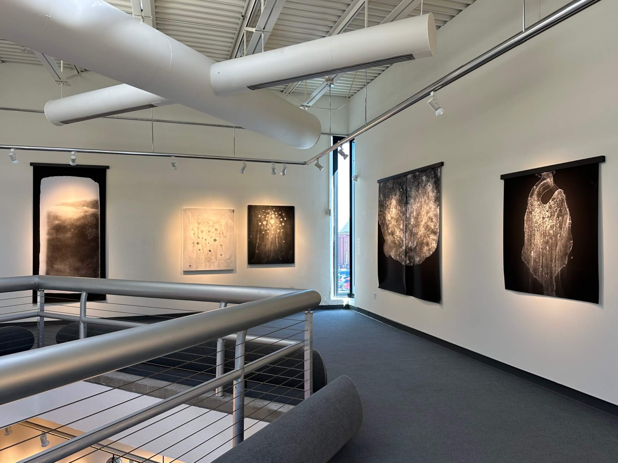 Installation view featuring Shoshannah White’s photograms, “Circle of the Sun,” at the art gallery of the University of New England in Portland, 2025. Photo courtesy of UNE Art Gallery.