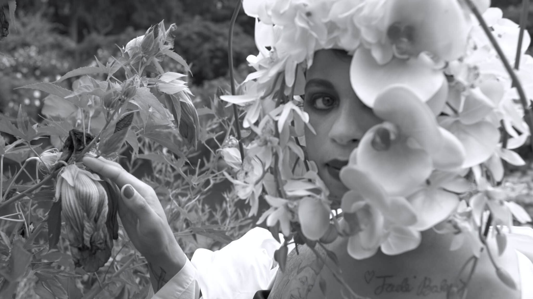 TOURMALINE: Exactly. We filmed it in the Brooklyn Botanic Garden, and Claire Sullivan, who’s a fashion designer, made my looks out of these long synthetic flowers, and they’re so lush and alive.