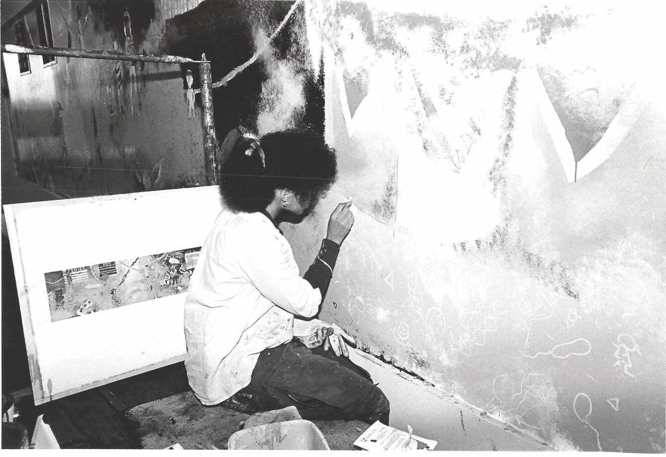Donnamaria Bruton working on a public mural in Detroit, c. 1970s. Courtesy of the Estate of Donnamaria Bruton and Cade Tompkins Projects.