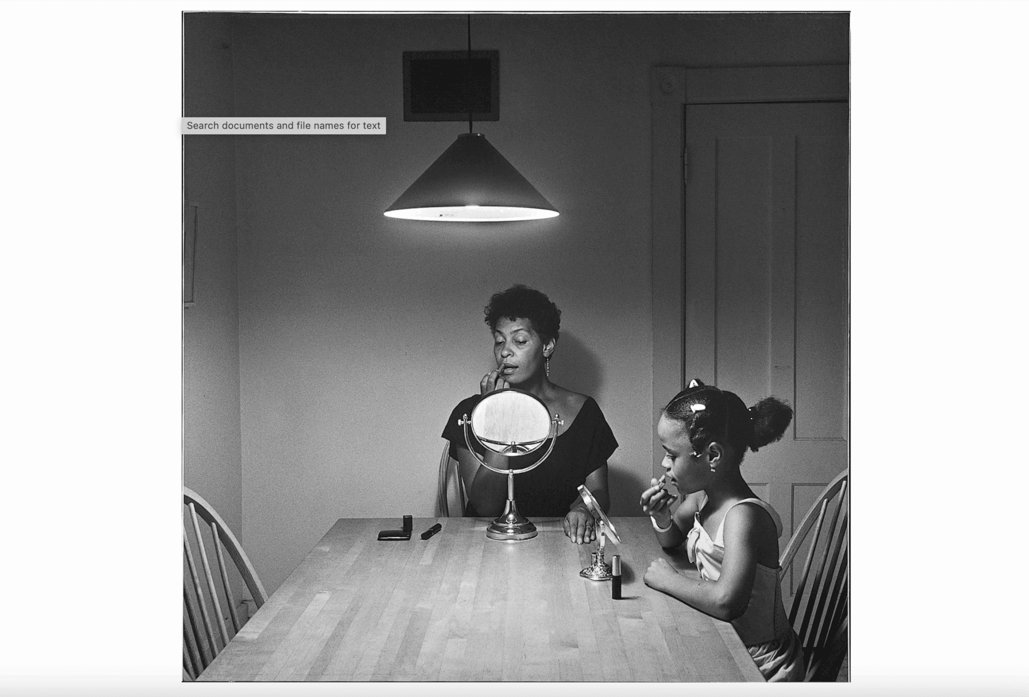 Carrie Mae Weems, Untitled (Make-up with Daughter), 1990. Gelatin silver print. Hood Museum of Art, Dartmouth: Purchased through the Harry Shafer Fisher 1966 Memorial Fund; PH.991.46. © Carrie Mae Weems.
