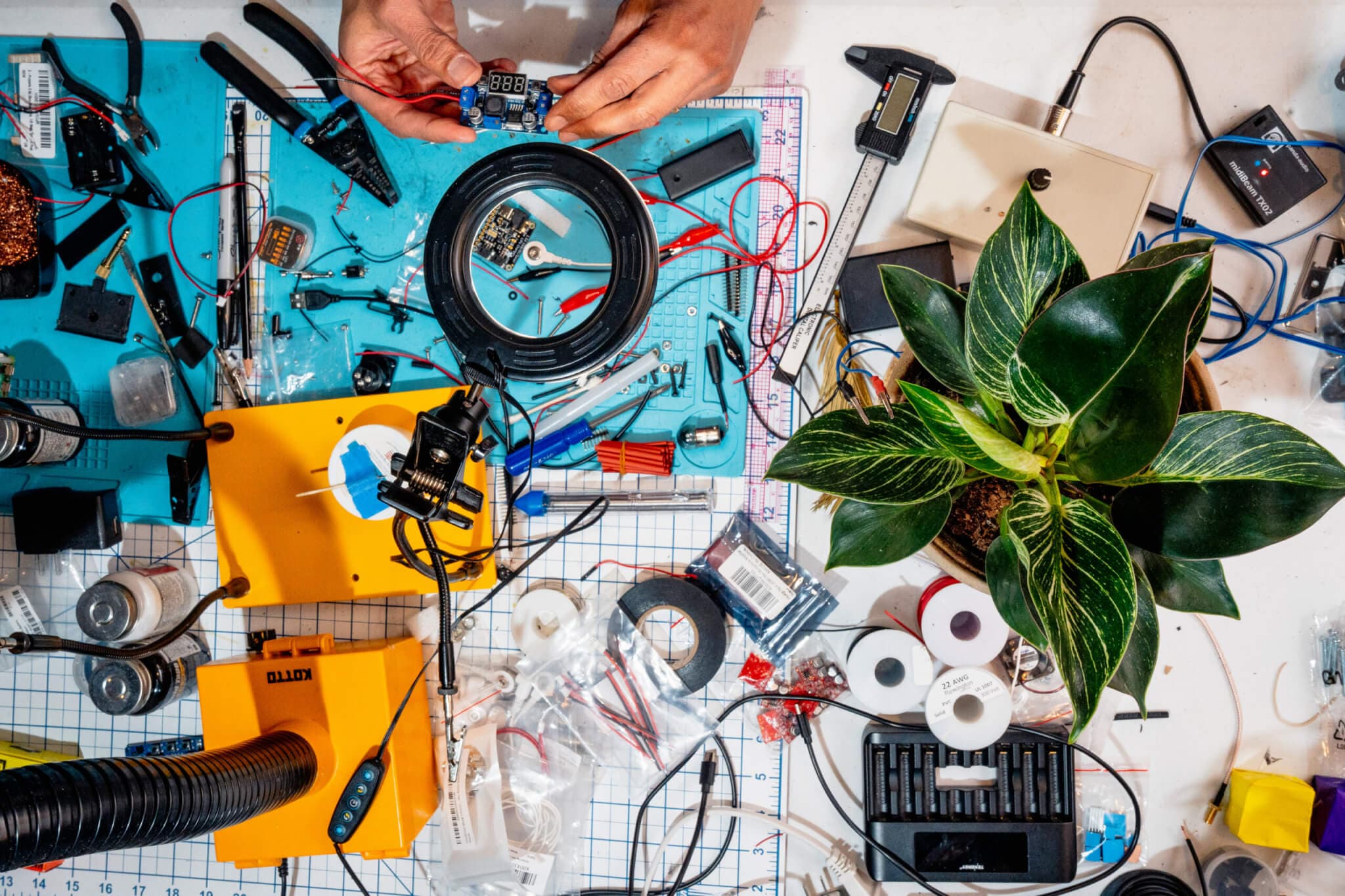 Skooby Laposky: I learned about biodata sonification over eight years ago. I had funded a couple of projects on Kickstarter, so I got an alert that there was this device coming out from a small artist collective in Philadelphia called Data Garden. They were trying to get this device to artists and musicians. It sounded interesting to have a new tool in my studio to help me generate ideas. I’ve been a plant parent for a long time, so I’m like, “Oh, I can hook up to my house plants and see what they can create.”
