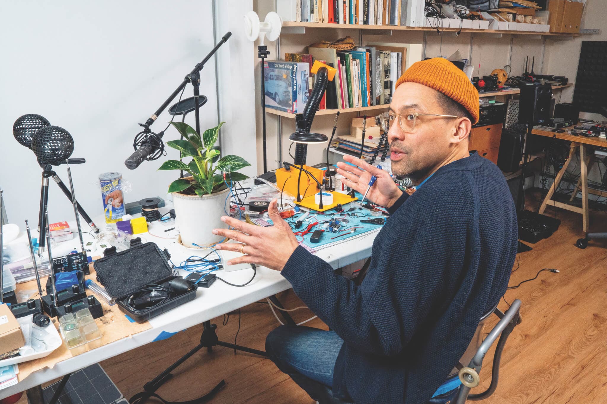 SL: I’ve been building a lot of my own custom microphones and thinking about what parts of a microphone you can change to make them behave differently. Is there a way to make a giant microphone that picks up a lot of activity all at once? Or what happens if you use ten of the same microphones in the same area? I think a lot of great art involves scaling up or shrinking, changing the size or scope of things. I feel fortunate that I have this aptitude to know how to build stuff. The most feasible way to have ten of these microphones would be to build them myself. It’s always cheaper to DIY if you can. My 3D printer has been going nonstop.