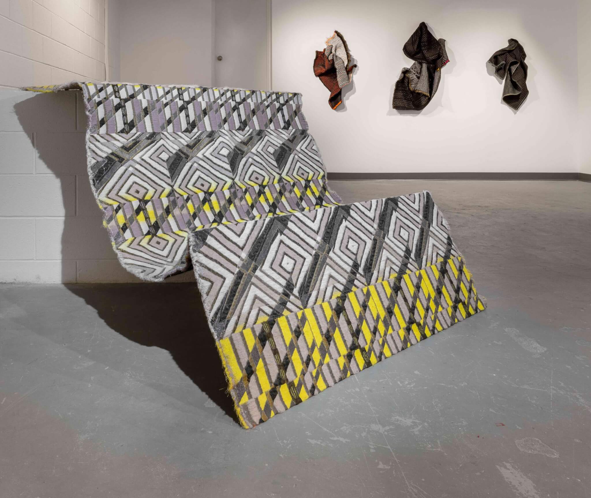 Jungil Hong, a longtime artist based in Providence, defies categorization with works that span various scales, mediums, and the continuum between representation and abstraction. At first glance, you may not initially assume these works are all from one artist—a large screen print, multiple textiles displayed in various sculptural configurations on the floor and wall, arrangements of found objects, and a series of photographs. Although the parts appear disparate, they are interconnected. To view the sum of these works is to perceive her career holistically, spanning the past twenty years. Hong’s artistic journey involves a continual reimagining and balancing of her older works, such as her elaborate jacquards, through new perspectives that reflect an evolving identity. This transformation is evident in her recent series of photo self-portraits, which blend the familiar with exploring the past and future. By undoing and redoing her art, Hong expands her sense of self and the concept of labor, keeping time fluid and responsive. This exhibition offers a unique opportunity to witness the evolution of an artist who continually reinvents her narrative, using diverse materials and techniques to explore the complexities of identity, time, and personal transformation.