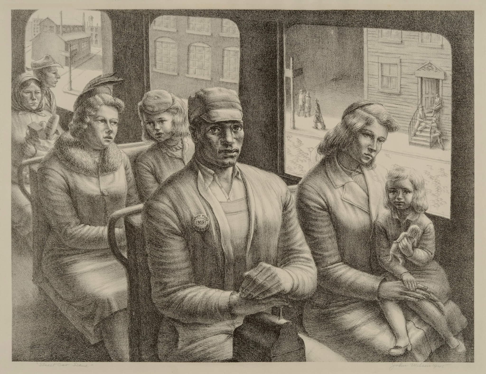 John Wilson, Streetcar Scene, 1945. Lithograph. Gift of George H. Edgell. © Estate of John Wilson. Photograph © Museum of Fine Arts, Boston.